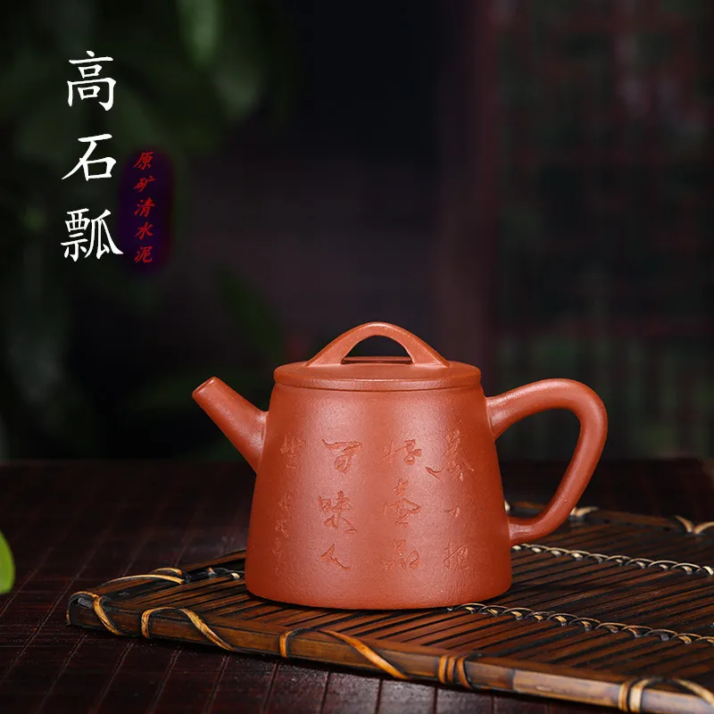 High Stone Drum Dark-red Enameled Pottery Teapot Infusion Of Tea Kettle Kung Fu Tea Have Gift Custo