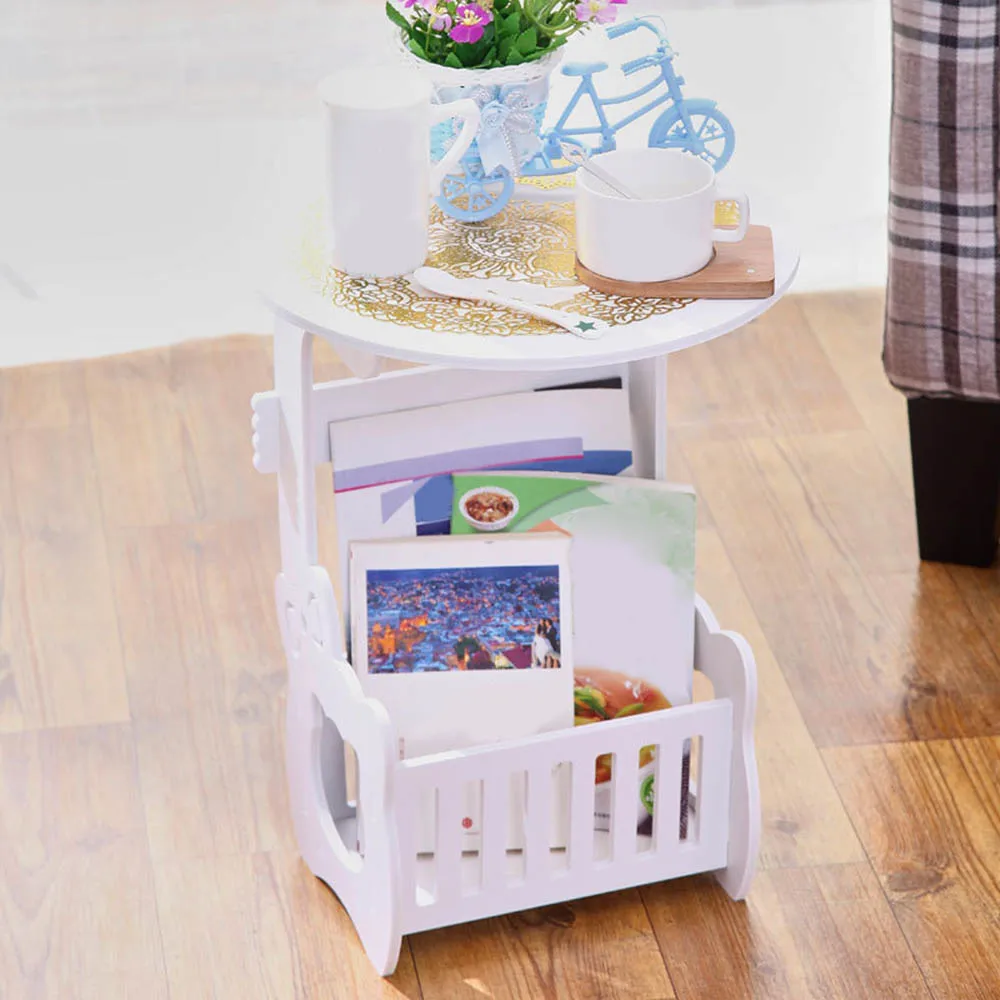 Sofa Bed Side Table Round Bedside Laptop Mini ConerTable Computer Desk Home Bed Desk with Shelves f