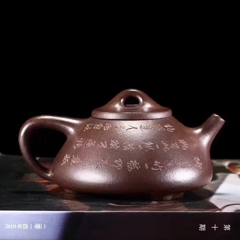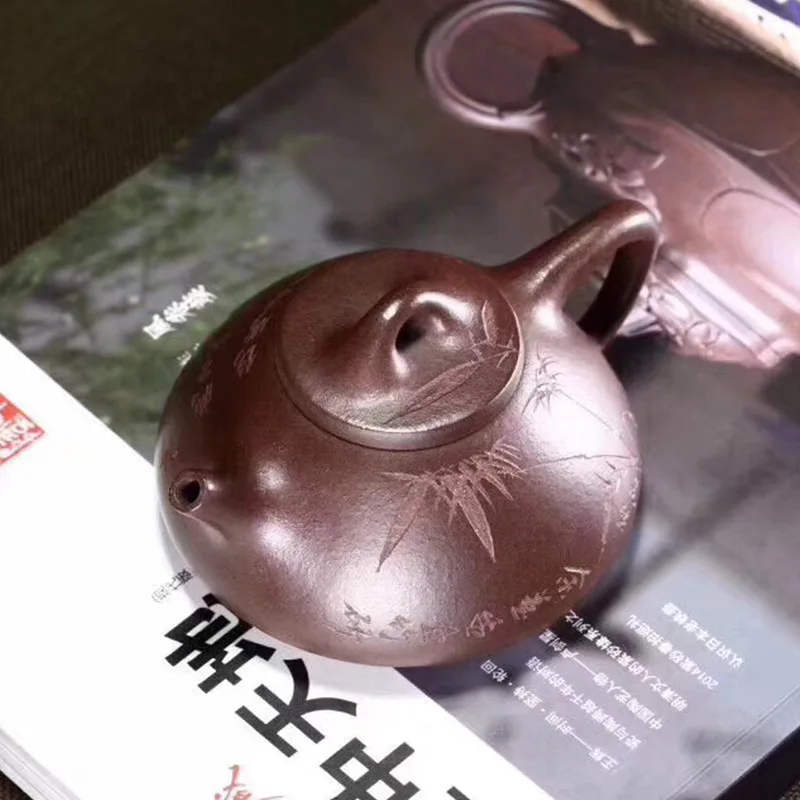 HOT Sale Yixing Dark-red Enameled Pottery Teapot Landscape You Smelting Stone Drum Famous Manual Raw Ore Old