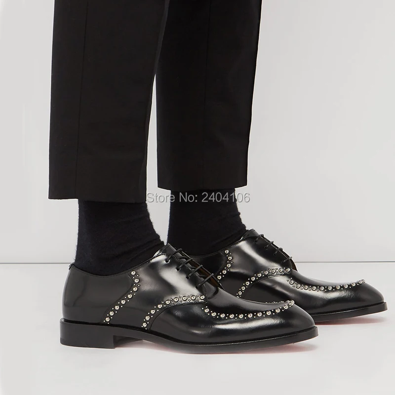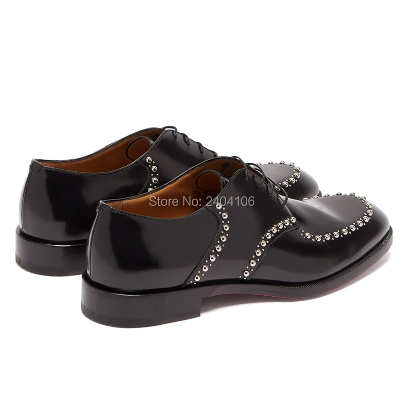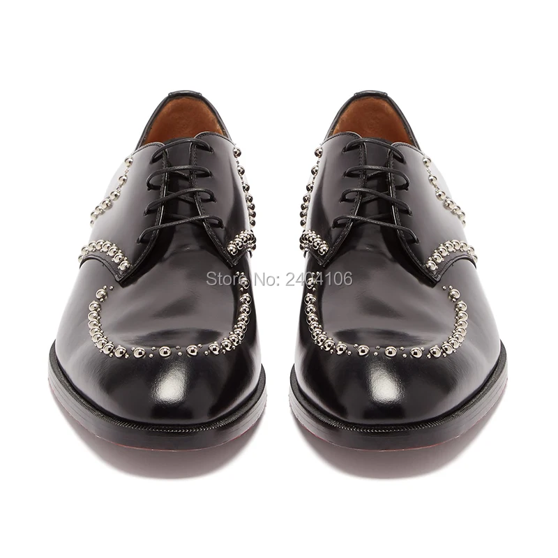 Review Top Drop Ship Shiny Sold Leather Silver Stone Studded Oxfords Business Dress Formal Shoes Cross-tied La